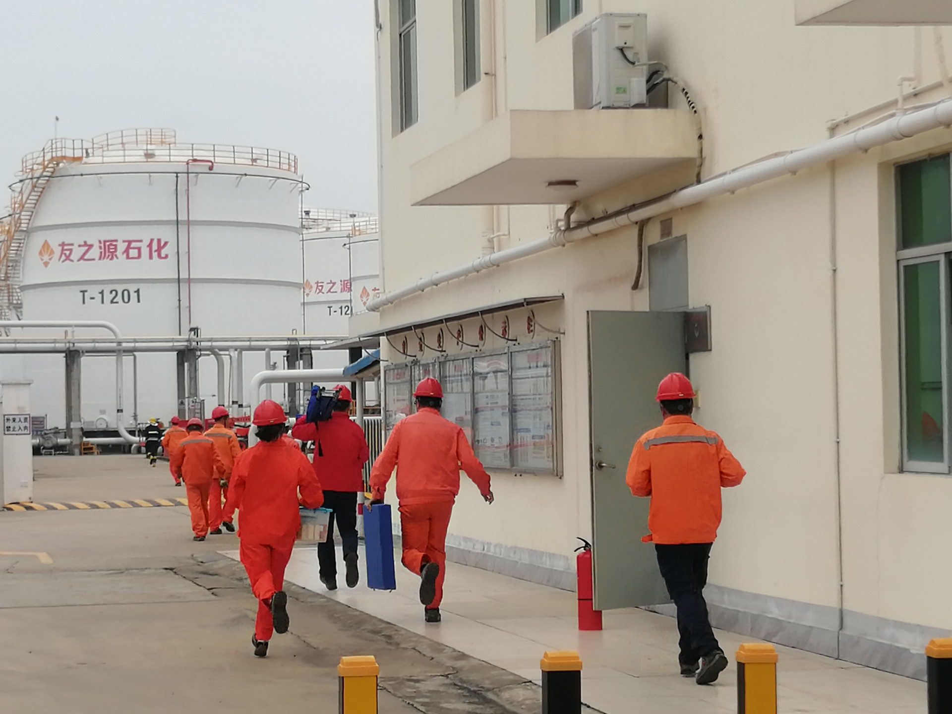 3月28日下午16時,興盛油庫組織全體員工模擬進行T1108罐汽油泄漏、火災事故應急演練。