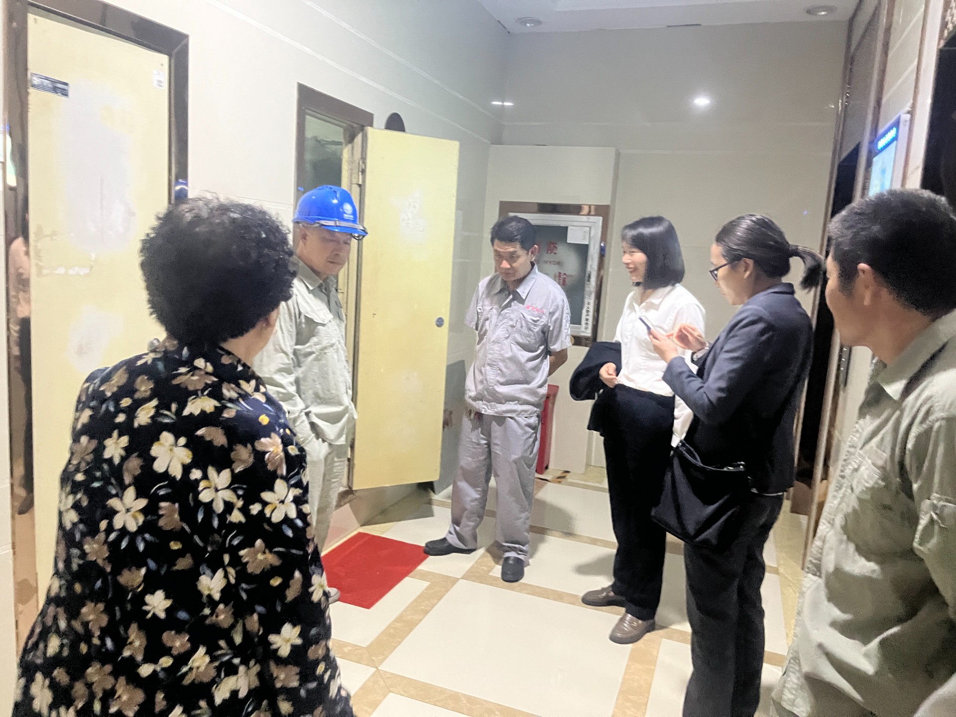 千鈞一發(fā)之際,夜班安保巡邏崗羅金垓馬上聯(lián)系在附近居住的工程部主管黎碧俊和維修工易志敏。兩位工程部工作人員在睡夢中接到緊急電話,立刻前往漏水事發(fā)地,迅速跑向閥門位置,關閉樓棟電井總電源閥門開關。如果沒有關閉總電源開關,業(yè)戶家的電源、電器有可能被燒毀,生命安全也會受到嚴重威脅。隨后,工程人員和安保人員全力幫助年邁獨居的業(yè)處理跑水情況。大家齊心協(xié)力,積極配合,終于將業(yè)主家里的積水處理干凈。因此意外事件,此樓棟被強迫停電12小時,工程部師傅配合供電部門人員連夜搶修,經(jīng)過檢修后才正常通電。